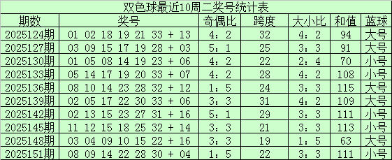 大小走势分析:上期开出大小比为3:3,上周二红球大小比3:3,最近十周二大小红球走势基本均衡,本期展望大小红球连接均衡开出,推选大小比3:3。